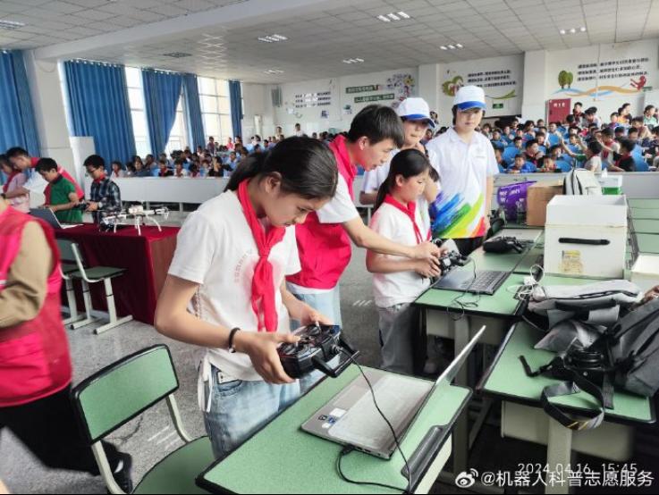 活动的最后,志愿者们将课堂移至操场,迎来了全场的高潮。水火箭一次次呼啸升空,划出完美弧线;无人机在操作下灵活盘旋,引来阵阵欢呼。同学们热情高涨,踊跃参与实践,在亲身体验中深化了对科学原理的理解,探索的欲望在此刻被彻底点燃。
