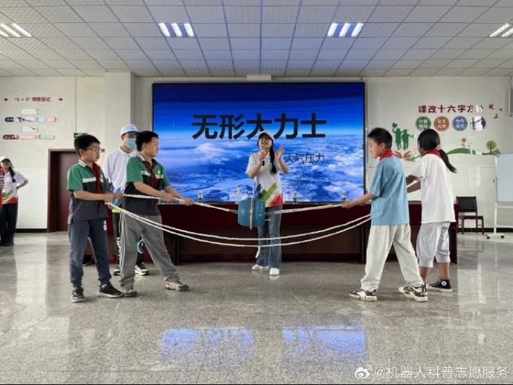 活动伊始,志愿者肖叙以一则“魔术”导入,巧妙引出“大气压力”的主题。她将抽象的理论与著名的马德堡半球实验相结合,通过现场互动实验,让同学们在惊叹中直观理解了大气压力的奥秘与日常应用。