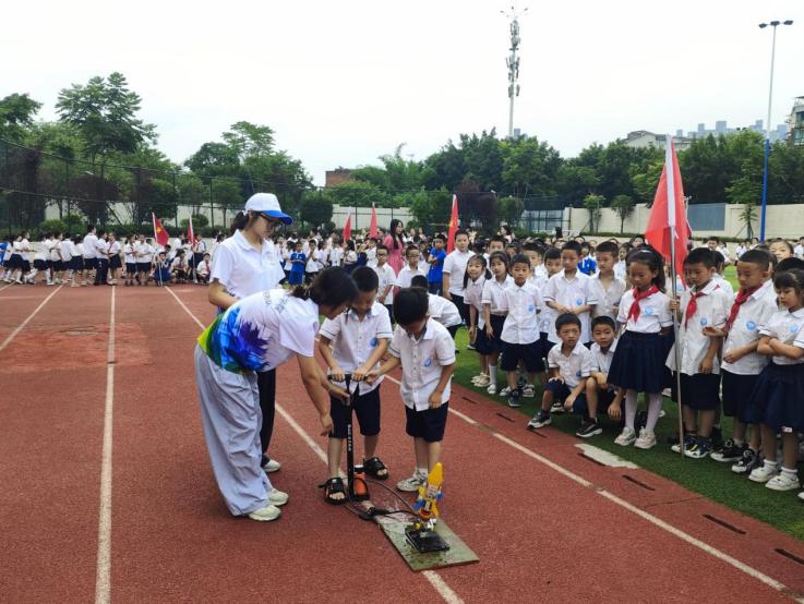 “5, 4, 3, 2, 1,发射!”活动的高潮在操场如期而至。在陈老师和志愿者们的指导下,孩子们分组动手,体验水火箭的制作与发射。当一枚枚自制的水火箭拖着尾流呼啸而起、直冲云霄时,全场爆发出热烈的欢呼声。这一刻,理论知识化为触手可及的实践,科学的梦想也随之翱翔蓝天。