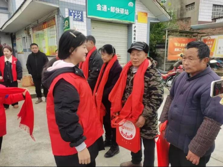 在胡市镇黄桷村,大学生志愿者们将自己平时卖旧物和废品积攒的零花钱购买生活用品,与来自导游协会的志愿者们一同为贫困村民赠送新年祝福礼。与此同时,大学志愿者们还向村民们普及防诈知识和安全用电知识,帮助他们提高安全意识。
