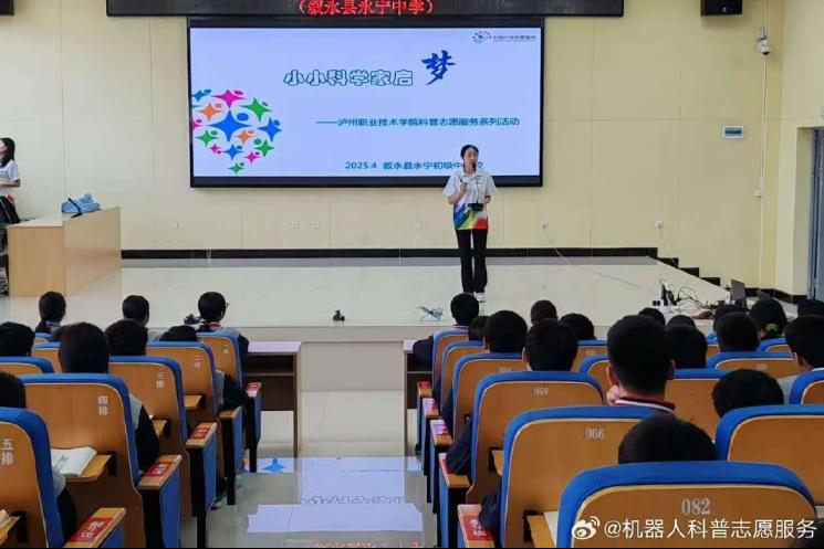 2025年4月29日至30日,泸州市智能机器人科普基地与泸州职业技术学院科普志愿服务队走进叙永县永宁中学与东大街小学,以“机器人”与“高新材料”为主题,为近500名中小学生带去系列科普讲座与互动体验,将前沿科技的火种播撒进川南山区的课堂。