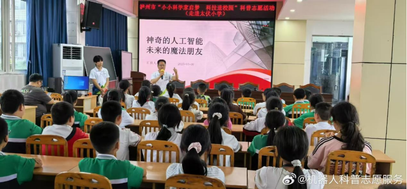 在全国科技工作者日来临之际,泸州市智能机器人科普基地、泸州职业技术学院科普志愿服务队师生志愿者携手走进泸州市太伏镇中心小学校,为三至五年级600余名师生带来一场以“致敬科技工作者,播撒科学新希望”为主题的大型科普活动。本次活动围绕安全与急救、人工智能、无人机、3D打印等16个主题展开,通过室内讲座与户外体验相结合的方式,以实际行动弘扬科学精神,践行高校社会责任。