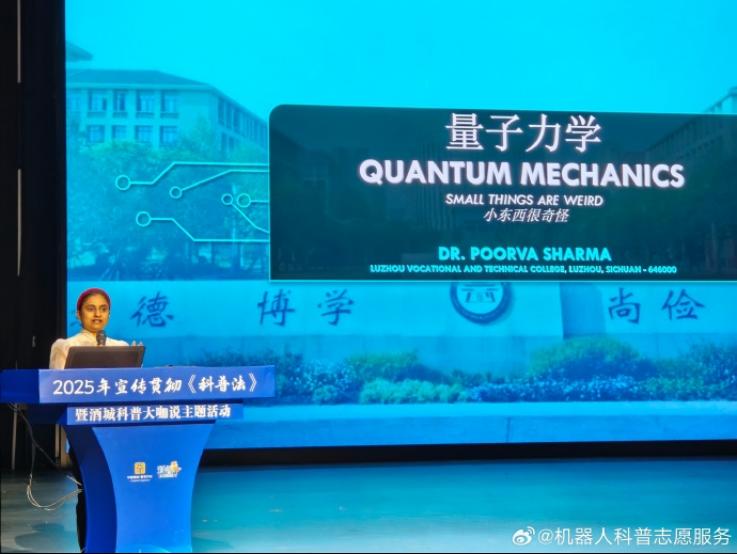 活动汇聚了来自泸州市有关部门、驻泸高校、区县科协、市级院士(专家)工作站等单位的240余名代表。我校印度籍博士夏尔玛(Sharma)老师与智能机器人科普基地负责人李刚老师同台开讲,成为本次学术沙龙的一大亮点,展现了我校在科普人才与学术资源上的深厚积淀。