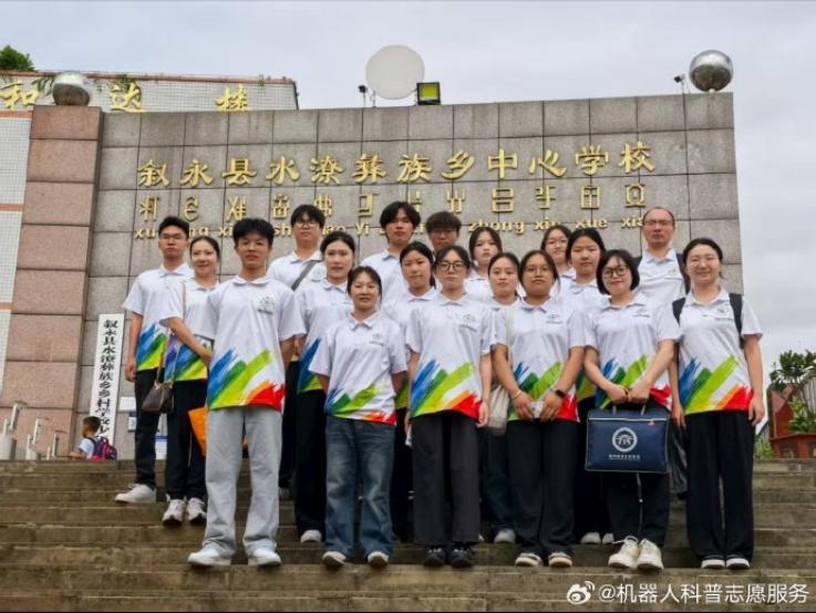 时值首个全国科普月,为弘扬科学精神、助力乡村振兴,9月9日,泸州市智能机器人科普基地、泸州职业技术学院科普志愿服务队的师生志愿者团队一行30余人,奔赴位于川滇黔三省交界处的叙永县水潦彝族乡中心校,开展“科普之光进彝乡”科技志愿服务活动,为当地350余名彝族学生带去了一场丰富多彩的科普盛宴。